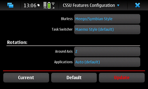 * Some of the options get immediately active as soon as you press the "Update" button. * Others need the hildon-desktop to be restarted. For those a menu option is available "Restart hildon-destop".