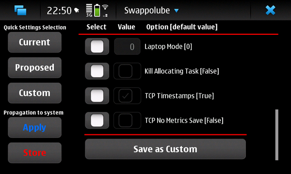 The SWAPPOLUBE is a user interface to the configuration of several parameters of the N900 kernel with the aim to make it faster.