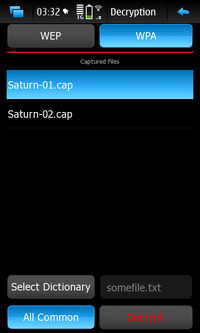 The Cleven application is a user interface to the aircrack-ng for the N900 device.
