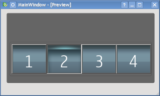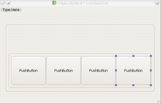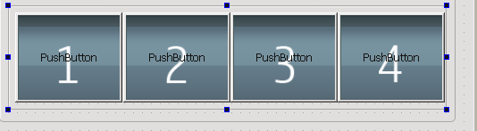 - Select all four buttons and right click, Layout->layout Horizontalally, and you should be left with something like this.