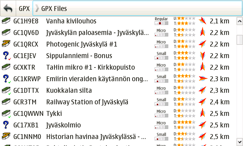 GPXView cache list