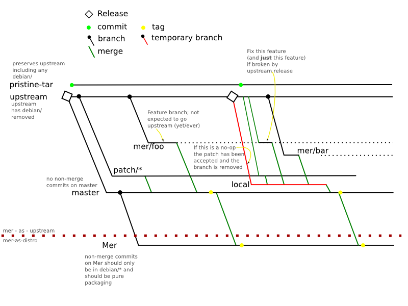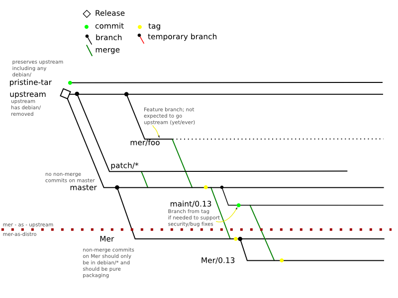 Once a tag is made in master, the Mer branch is branched, merged and tagged.