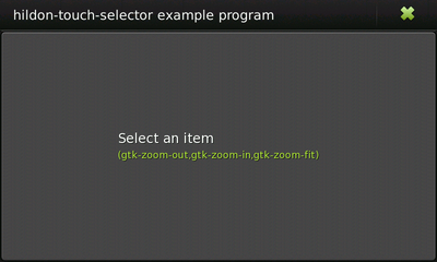 </source> A HildonTouchSelector with a single text column is created in this program using the following convenience constructor. <source lang="python">