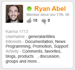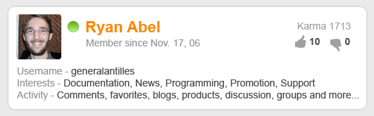 The information needed for the small version will be the avatar, the real name or maemo.org username of the person, their karma rating and online status. Other decorations will be added depending on the application (whether the person has given the post a thumbs up or down, the rating the person has given an application, the date the comment was added, etc).