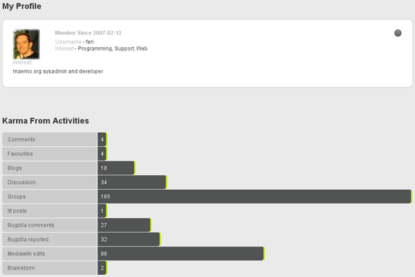 Similarly the "Bugzilla" bars would lead to pages, where Bugzilla shows all the bugs this user has been fixed, or reported...